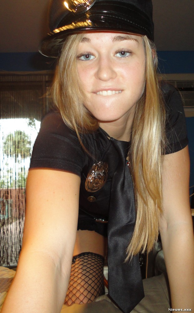 Zij heeft een knuppel en handboeien en met haar mag je zeker niet spotten, maar wel kijken!!! Lekker hoor!