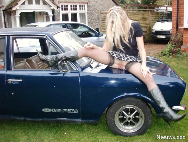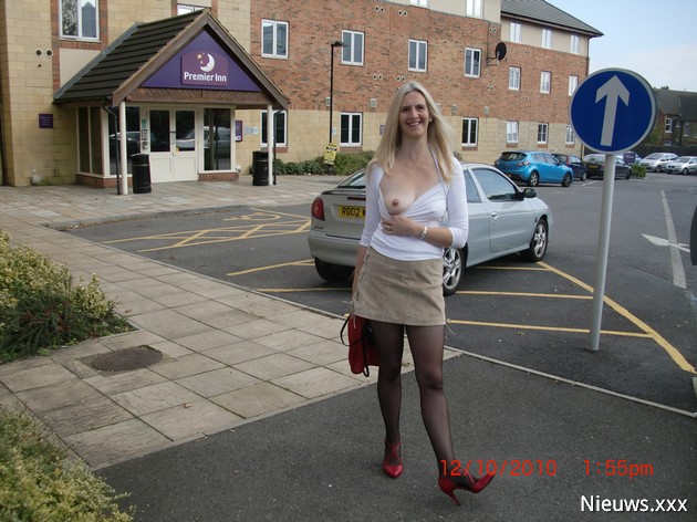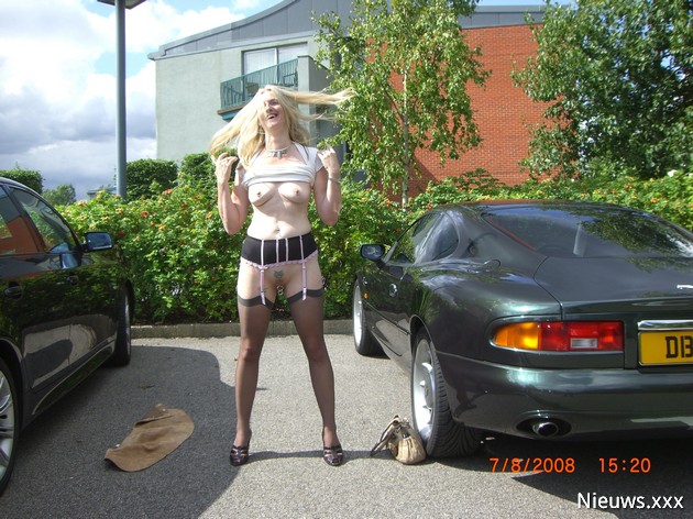 Blonde milf is gek op snelle motors en haar vriendje helemaal gek op lekkere naaktfoto`s in de buitenlucht! De blonde stoot laar regelmatig haar broek en haar slip je zakken om wat foto`s te laten maken van haar clitoris, want er hangen wel paar grote piercing ringen aan haar clitje! Helemaal handig om te beffen is het niet, maar leuke dingen kan je er wel mee doen en zij is ook nog fan van een anaal butplug met een diamant! Wat een kinky sletje is zij zeg!
